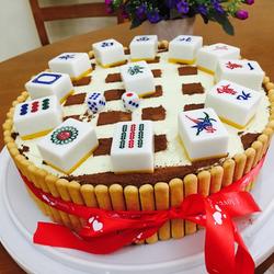 These are all real mahjong.I first put a piece of plastic wrap on the surface of the cake, and then sprinkled it with cocoa powder.Because this mahjong is just for decoration and not edible, we just put it on top when eating the cake.Remove the plastic wrap and you can eat with confidence.