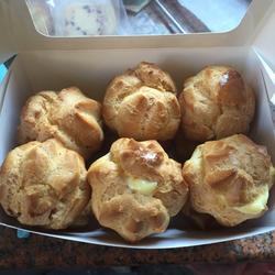 15. After the puffs come out of the oven, put the vanilla filling into the piping bag and squeeze it into the puffs.
