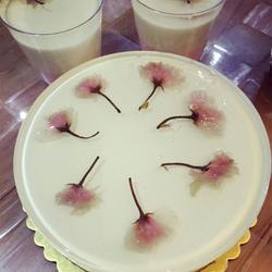 17.Put it in the refrigerator and adjust the position of the cherry blossoms (refrigerate for more than 4 hours.I made it at noon and ate it at night)