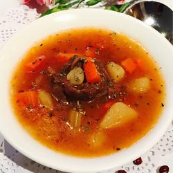 10.Put up another soup pot, wait for the water to boil, add the fried beef, tomatoes, celery and the fried potatoes, onions and carrots until soft.Bring to a boil over high heat and simmer for 2 and a half hours.