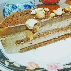 12. Divide the chocolate cake into two pieces, remove the sides of the cake, add one layer of cake and one layer of mixed cream, and put it in the refrigerator for four to five hours