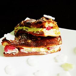 9. I forgot to take a picture of this step, just squeeze it into the shape like in the oven (long strips), cut the prepared crispy skin into strips, place it on the surface of the batter, and brush it with a little egg wash , sprinkle with chopped peanuts or almonds, put it in the preheated oven, heat to 180 degrees, lower to 160 degrees, for 35 to 40 minutes.