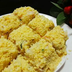 4.Make a large square and then divide it into small squares and sprinkle with crushed egg yolk