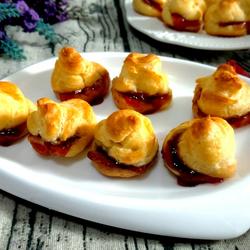 10.After the puffs are completely cooled, cut them all horizontally and add blueberry jam.You're done!