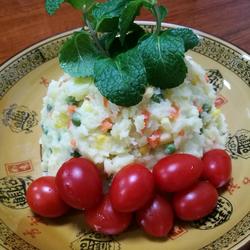 5.Put the steamed potatoes into a bowl, add butter, sugar and salt and stir into puree