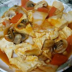 How to cook tofu with mushrooms and cabbage in tomato sauce