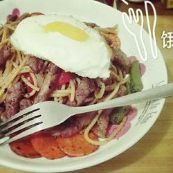 5. Add the marinated meat and continue to fry until the meat is done.It depends on personal taste!