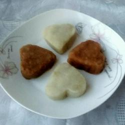 11.Use a carving tool to carve two brown sugar mashed potato heart shapes.
