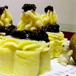 8.Make a decorative shape and squeeze the blueberry sauce on the mashed potatoes