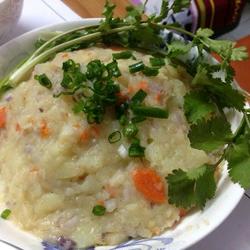 1.Cut the potatoes and carrots into thin slices and steam them in a steamer for 15 to 20 minutes