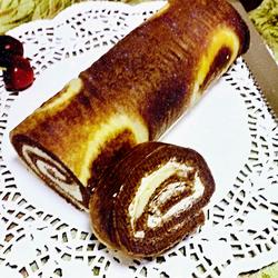 19.Take out the frozen cake roll and slice it, the chocolate cake roll is completed