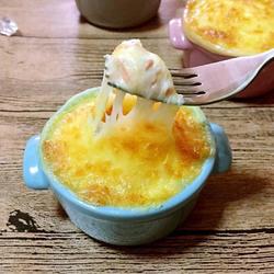 10.Put it into the preheated oven, heat it up and down to 180 degrees, and leave it on the middle layer for 15-20 minutes until the cheese is melted and the surface is golden brown.