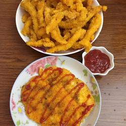 7. Fry the chicken steak for 4-5 minutes and eat it with tomato sauce.It tastes great! Pictures of the finished product below!