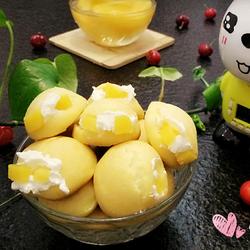 11. Whip the whipped cream with sugar, put it into a piping bag and cut a piece from the side of the puff.Open the mouth, squeeze in the light cream, and add the diced yellow peach.
