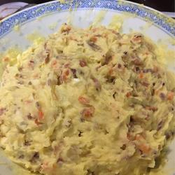 4.Add steamed potatoes: egg yolk, lemon juice, milk, yogurt, salad Mix the sauce together