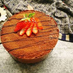 8.Pour part of the mousse paste until it does not cover the surface of the cake