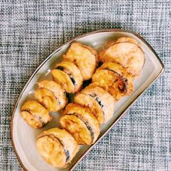 6.Fry until the eggplant box is golden brown and serve on a plate