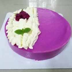 11.Put in another cake slice and pour in two-thirds of the remaining dragon fruit mousse paste.