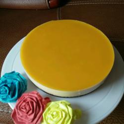 12.Put the mango puree Brush 60g of the juice out to make a mirror surface