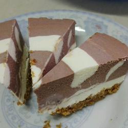 17.Take out the bowl of mousse base and pour the two portions of mousse paste into it alternately