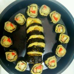 2. Mix the eggs with salt and fry them into two omelette pancakes.I spread them too far, but in fact, I only need to spread them out to the size of seaweed