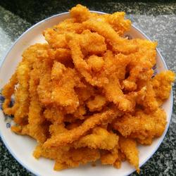 10. After the oil boils, fry the chicken fillets and divide them into pieces Cook three times until it turns golden brown and you can take it out (put it into the pot a little at a time, and the amount will be good once every 1 minute.Avoid putting it in later if it is not cooked.It is best to put it in first when the heat is high)