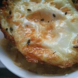 15.Then spread an even layer of mashed potatoes and cover with a cumin fried egg and it's done