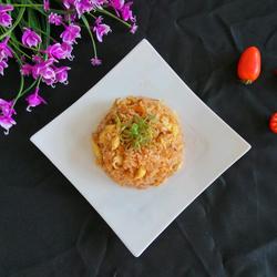 9.Place the fried rice in a bowl and place it upside down on a plate