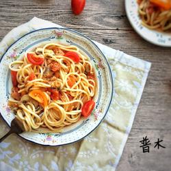 Because it is made for children, I used children's The tomato sauce and minced meat are also minced, and the noodles are not hard.Finally, I used small tomatoes to garnish, it would be better if you can garnish with basil leaves