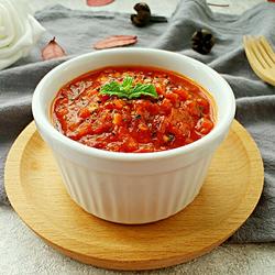 4. Pour in the tomato sauce and stir-fry evenly, then reduce to low heat and simmer.