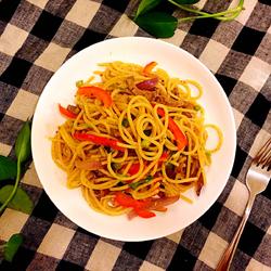 The cooking time of different pasta origins is also different.You can try it when cooking.It will be fine if it is not hard.Don't cook it too soft.Stir-fry the beef before serving it to avoid overcooking and making it unpalatable.If you have it at home, You can also add a spoonful of black pepper barbecue sauce and it tastes great