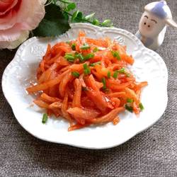 5. Add the shredded potatoes and evenly coat them with tomato sauce, sprinkle with chopped green onion and serve.