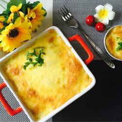 8. Put the mashed potatoes covered with cheese into the preheated oven and bake at 180 degrees for 20 minutes