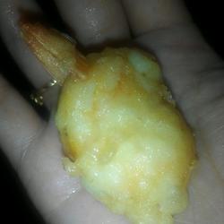 3. Heat the oil pan and put the shrimps into the pan one by one with chopsticks.Fry until medium brown