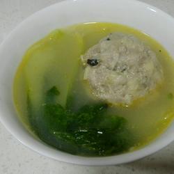 4.Put the soup into the can, rub the meatballs into the soup, and serve Steam for 45 minutes.Then open the can, add the rapeseed, turn to low heat and simmer for 10 minutes.