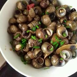 3.Then, put the snails in the pot, add some wine, and stir-fry