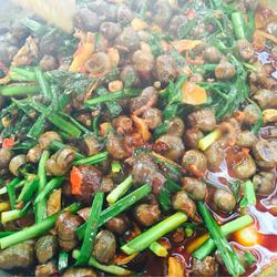 7. Add mint and chives and stir-fry everything.It can further remove the fishy smell of snails