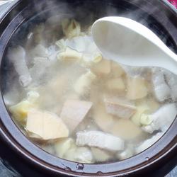 5.Put the bacon and fresh meat into the water.After boiling, add Qianzhang knot.