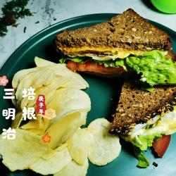 5. Then stack all the ingredients together, and put yellow mustard and egg yolk on the top layer Sauce, serve with potato chips, and a simple meal is ready.
