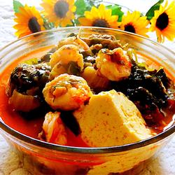 11.Pour the shrimp and tofu into the pot, add an appropriate amount of salt, Bring to a boil, turn to low heat and simmer for twenty minutes.