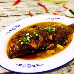 3. Turn to medium-low heat and add ginger, garlic, cooking wine, Light soy sauce, dark soy sauce, sweet and sour sauce are slowly cooked to color the fish
