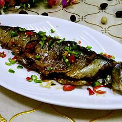 10.Use a spatula to carefully put it on the plate, sprinkle with minced green and red peppers, the smell of fish is combined with the spiciness of green peppers, it is delicious!