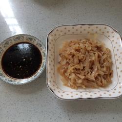 1. Wash 2 pieces of jellyfish skin, cut into shreds and put them in a basin to soak, add some MSG to soak, it will shorten the time The soaking time is less salty