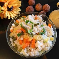 7. After frying, add a small amount of salt and MSG, cut into diced green onions, stir-fry a few times, and the fragrant kimchi fried rice is ready to eat.