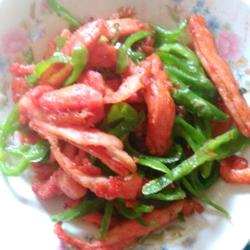 1. Cut the tenderloin into strips, cut the shallot into small sections, and cut the green pepper into shreds