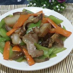 4.Put oil in the pot and wait until the oil is warm.Add ginger and green pepper.Stir-fry the carrots for 10 seconds, then add the pig ears and stir-fry, add salt, MSG, chicken essence and five-spice powder