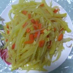 2. Cut the potatoes into shreds, soak them in cold water, soak them for a while, take them out and set aside.