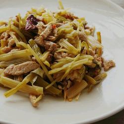 5. Stir-fry the cut pickles for a few minutes, add sugar to taste and serve.