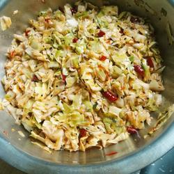 6.Pour the hot oil into the cabbage