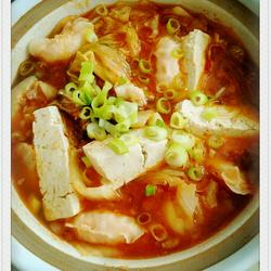 2. Pour oil at the bottom of the pot, cook the fat beef until it is raw, add kimchi and stir copy.Pour into casserole.